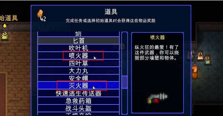 玩家需要先完成任务,挑选初始道具,进而解锁喷火器与灭火器。