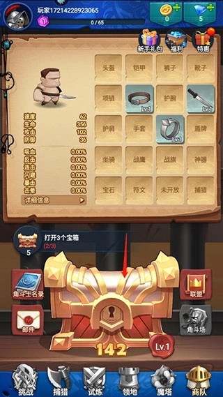 这里教大家怎么开宝箱换装备,打开游戏后点击宝箱;