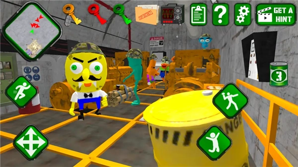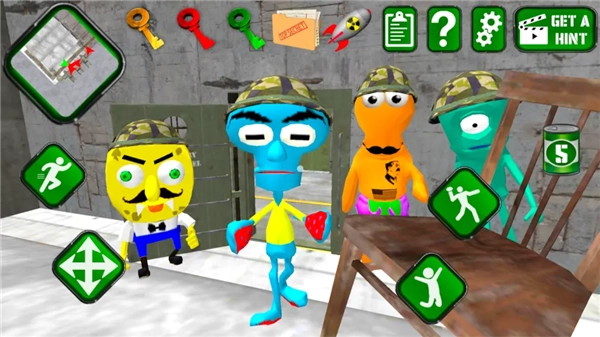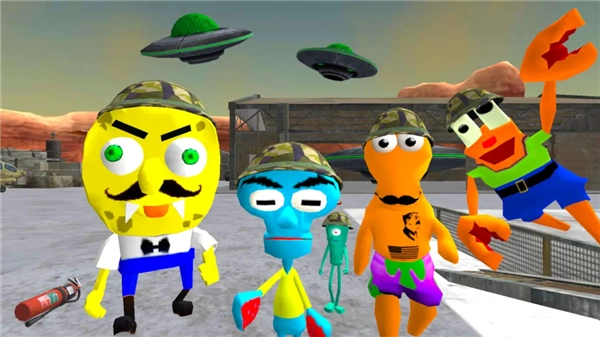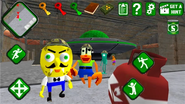 海绵邻居基地版是一款以海绵宝宝为题材制作的逃生类游戏,在游戏中,玩家们需要扮演海绵宝宝的朋友,他现在邀请你51区军事基地进行游玩,但是这里的人全是十分恐怖的外星人,并且他们要杀你灭口,因此你需要赶快逃离这里,不过你可以通过拾取和投掷物品来击晕敌人,为自己争取逃脱时间。所以感兴趣的用户,快来海绵邻居基地版游戏进行体验吧!