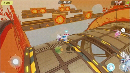 后面的平台堡垒得赶紧找到两侧的弹簧垫跳出去,要是一直待在里面,会因为和滚筒距离太远而被判定死亡。