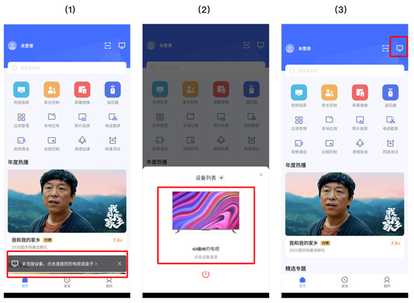 让小米电视和手机处于同一个网络环境中,接着打开手机里的“小米电视助手”,与电视完成连接,具体的连接步骤如下: