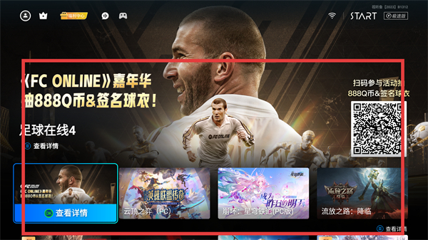 在游戏平台首页,会弹出【FC-ONLINE】嘉年华活动的窗口,点击【查看详情】就能知晓活动福利,也可以直接浏览下方的游戏列表哦。