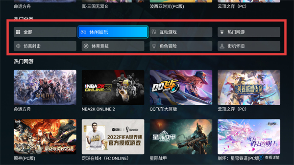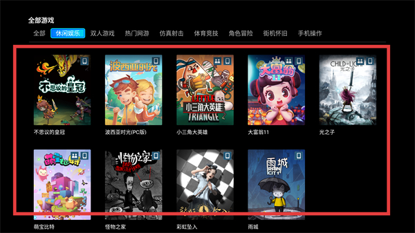 在游戏分类区域,点击【休闲娱乐】标签,即可筛选出该类别的游戏,有助于快速找到心仪的休闲向作品。