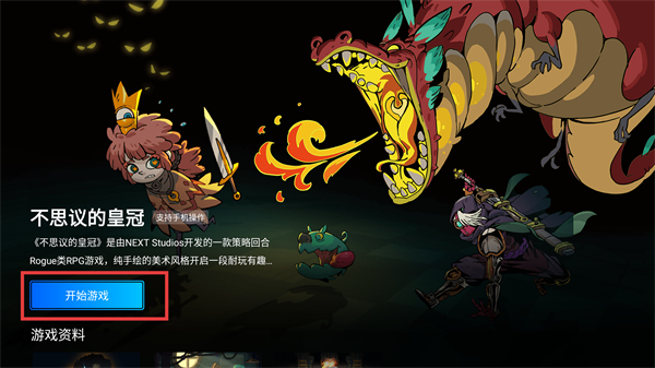 选中《不思议的皇冠》后,进入游戏详情页面,点击【开始游戏】按钮,即可启动这款策略回合Rogue类RPG游戏。