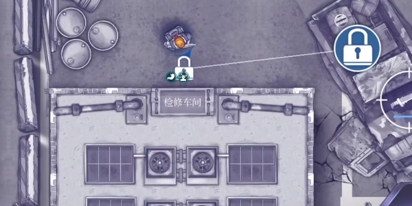 走到军事营地的检修车间外,用从迷雾商人那里拿到的钥匙打开车间大门,进入检修车间。