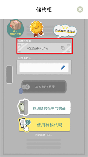 储物柜的钥匙是一串密码,玩家只需点击下方的【移动储物柜中的物品】,就能在不同设备上继续自己的游戏进度。