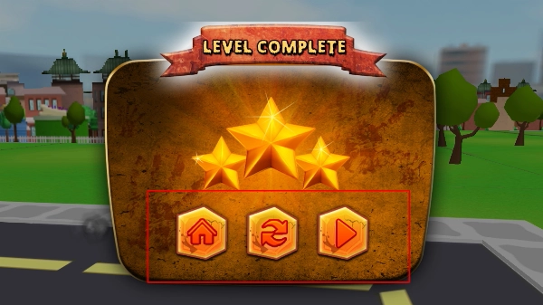 完成关卡后会得到【LEVELCOMPLETE】的评价以及星星奖励,此时可以选择继续挑战新的关卡,以此来提升小丑的能力。