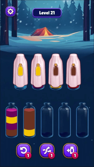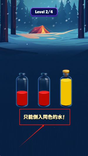 多重解谜机制:除了要进行颜色匹配,还得规划倒水的先后顺序,防止不同颜色的液体相互混合。