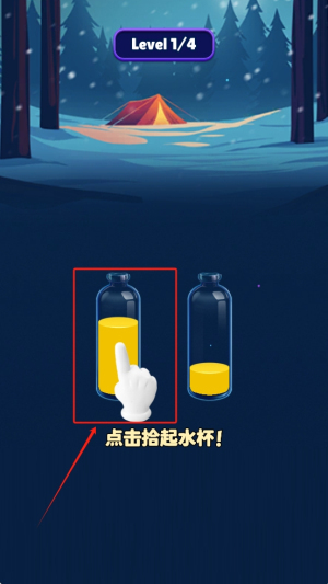 点击拾起水杯,开始第一关。
