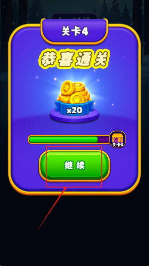 通关后点击“继续”按钮,进入下一关。