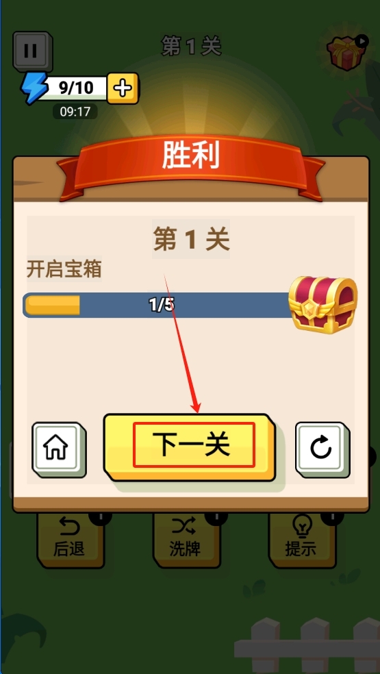 完成关卡,点击“下一关”继续游戏。