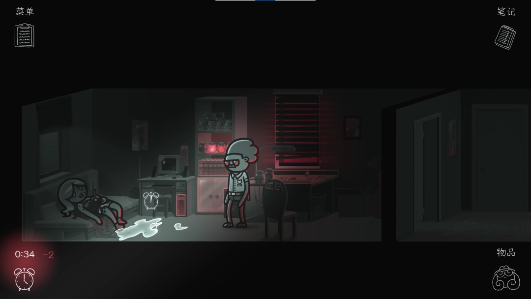 2、侦查就是跟场景互动检查物品,推理游戏必有的一项。