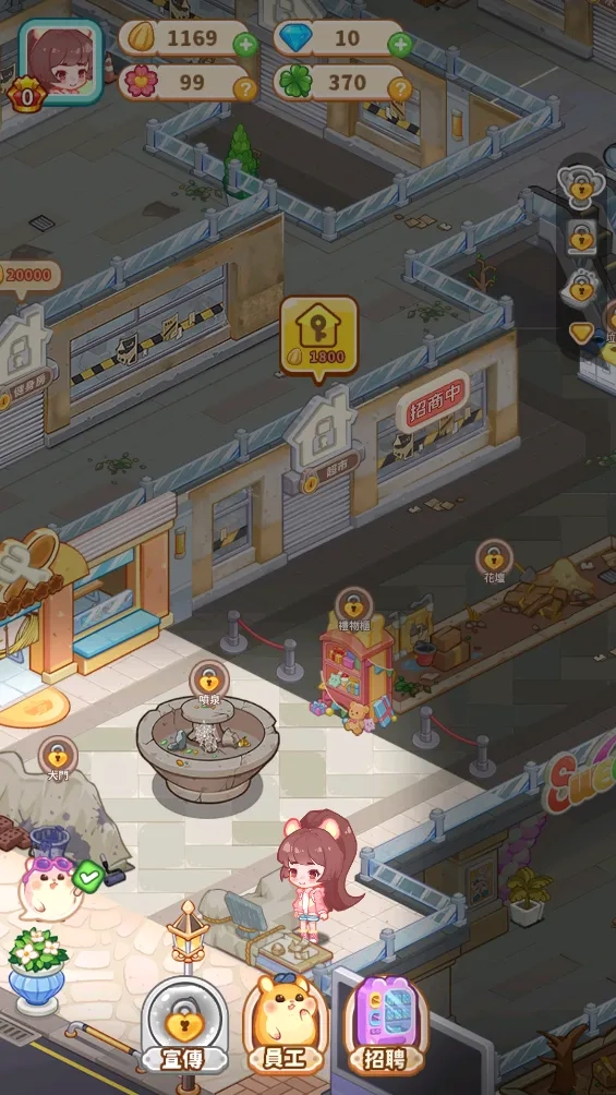 3. 可爱画风与萌物相伴:拥有温馨治愈的画风,玩家能和可爱的仓鼠一起经营商业街,还可招募萌物成为员工,增添趣味。