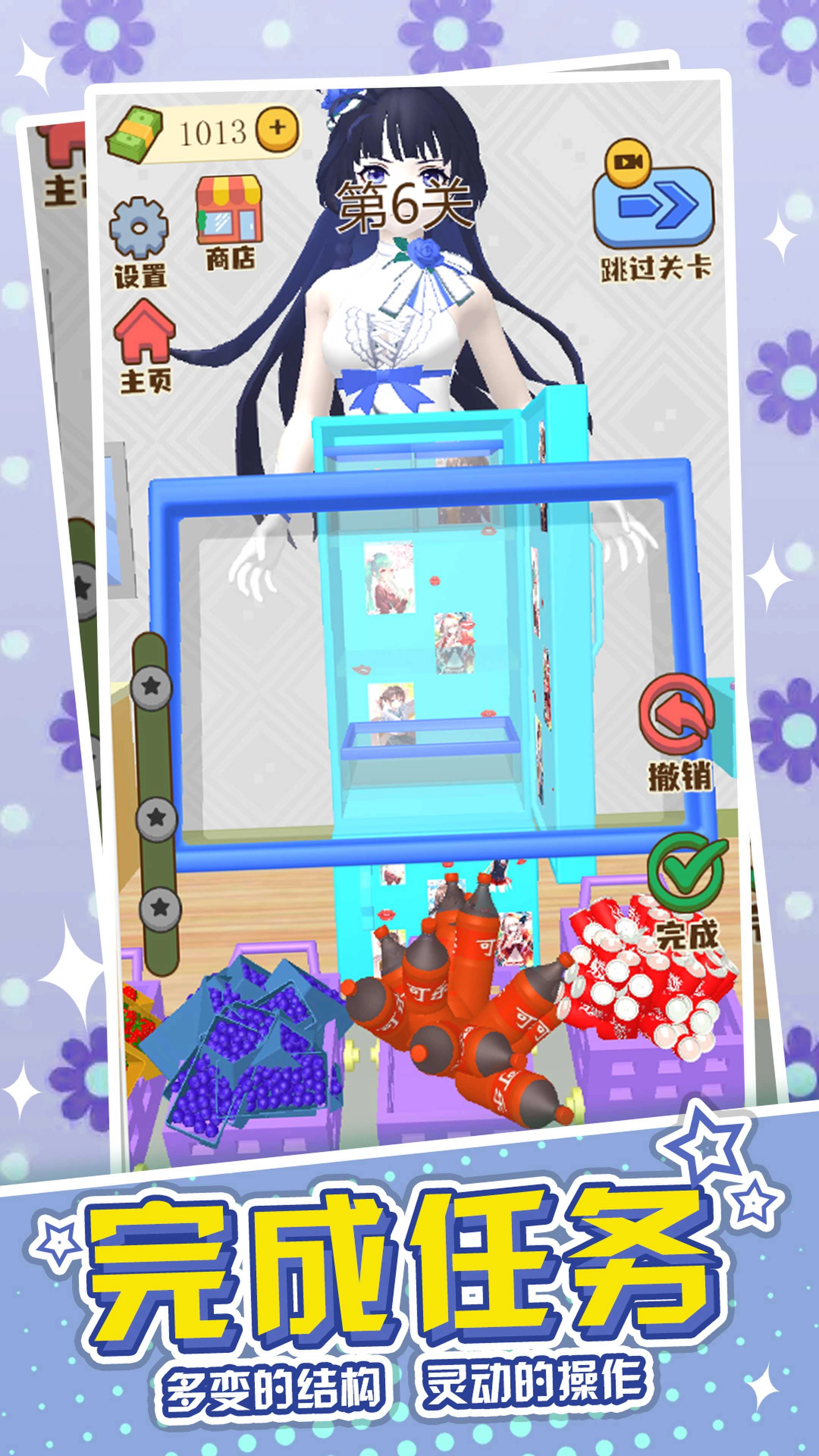 5、右下角可以免观看获得提示,在有限的时间内按照提示完成收纳摆放。