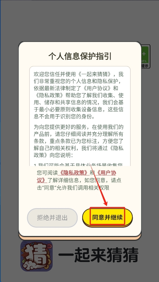 阅读个人信息保护指引,同意并继续使用。