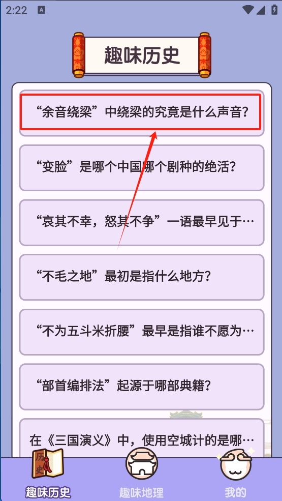 选择趣味历史问题,开始探索历史知识。