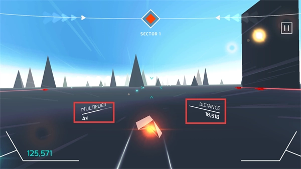 持续推进关卡,【MULTIPLIER】会提升到4倍,【DISTANCE】累计达到18518时,分数也会随着倍率一同增长。