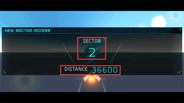当【DISTANCE】数值累积到36600时,即可解锁【SECTOR-2】,开启新的关卡区域并继续进行挑战。