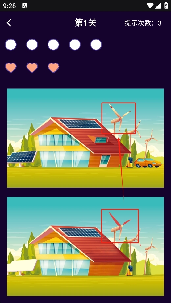 道具辅助系统:获取放大镜能够查看细节之处,提示功能则会将一个差异点进行高亮显示,助力玩家打破瓶颈。