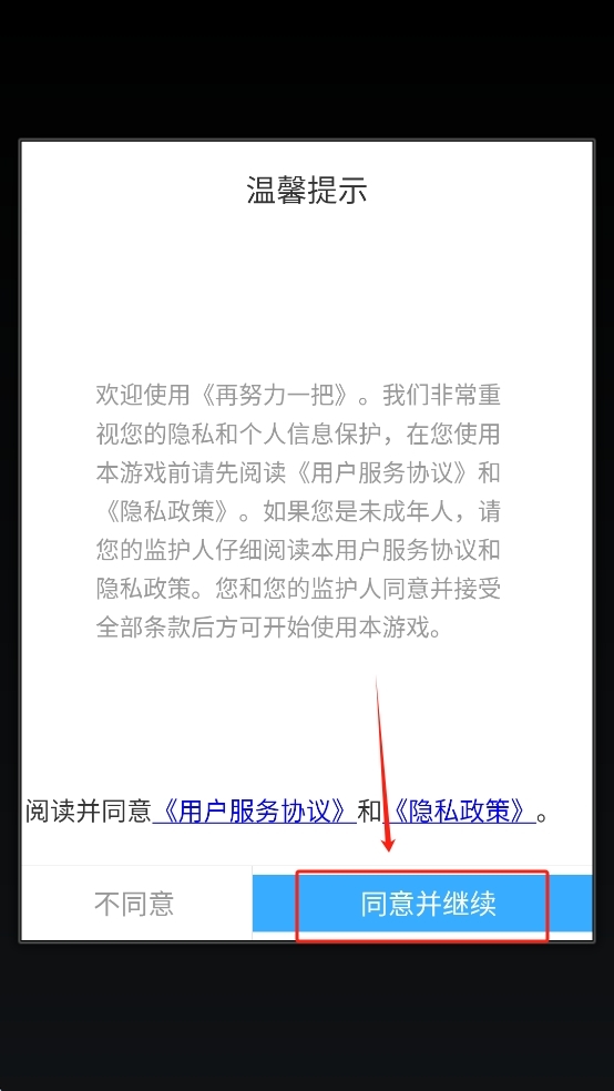 点击“同意并继续”按钮开始游戏。