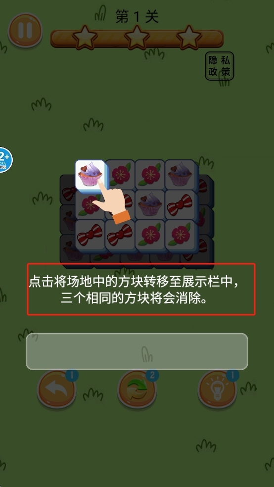 点击方块三个相同的方块将会消除。