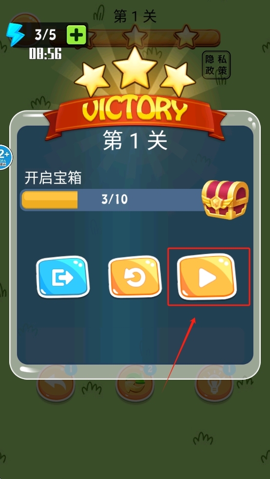 完成关卡后,点击播放按钮继续下一关。