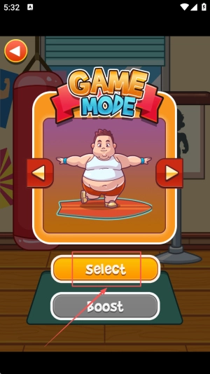 开启游戏:进入关卡界面后,先了解目标要求,接着点击“select Boost”按钮,即可启动健身挑战。