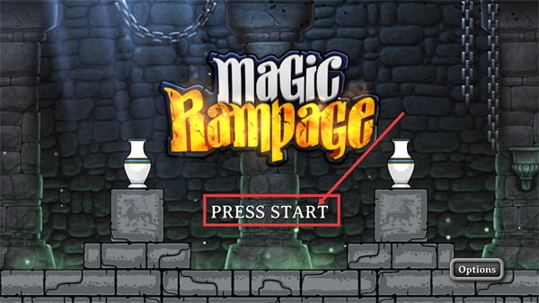 在【Magic-Rampage】的启动界面,点击【PRESS-START】按钮就能进入游戏,开启这段冒险之旅。
