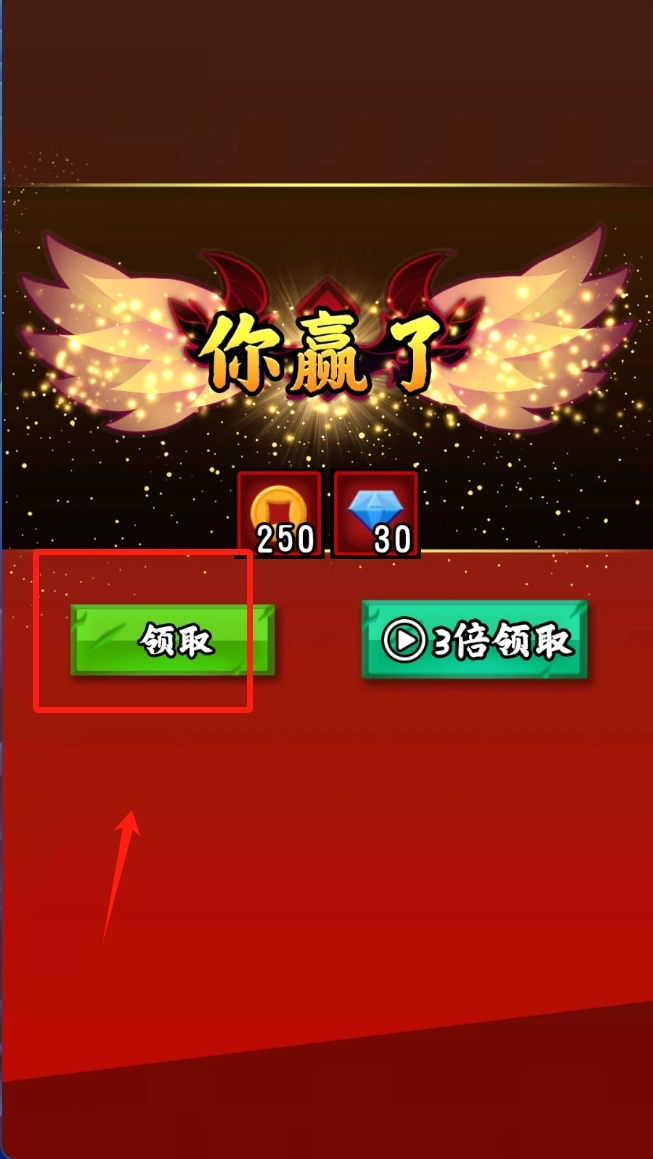 战斗获胜之后,点击“领取”按钮就能拿到奖励。领取奖励是游戏里很重要的一个环节,通过它可以获取金币、钻石之类的资源。