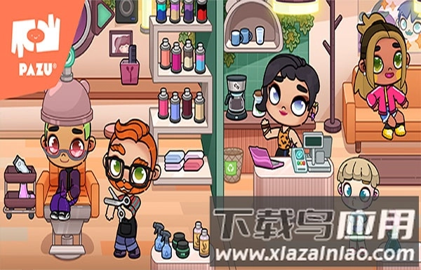 2、探索开放式世界,解锁各类功能建筑,如理发店和披萨店,体验丰富互动玩法;