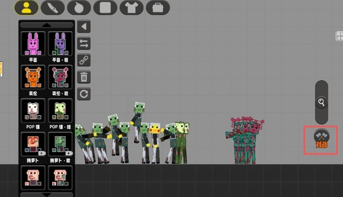 2、切换对战模式当切换到「对战模式」后,感染体会主动向居民发起进攻。因此,在前期布置阶段就要为居民配备合适的装备,提升整体战斗能力。