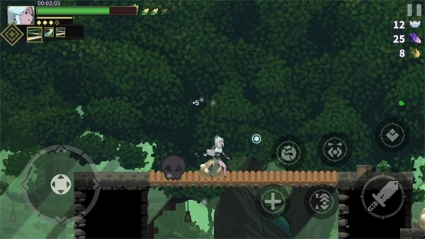 4、正式开始后左边控制角色移动,右边是普攻、技能、闪避、跳跃等按键。