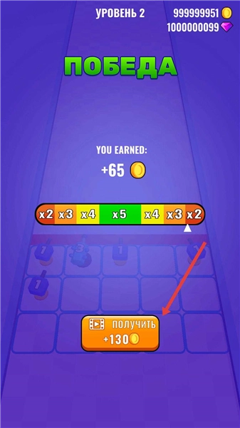4、顺利通过关卡后,除了能得到金币奖励,还可以点击橙色按钮,通过观看视频来获取额外的金币,为接下来的关卡储备资源。