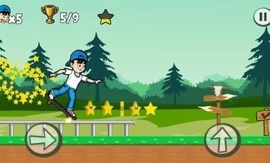 1、溜冰小子大作战》是一款闯关跑酷类游戏,其画风采用了Q版卡通风格的画面。