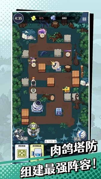 采用即时制塔防机制,战场局势瞬息万变;通过制造系统随机获取炮塔,相同类型可合成进阶;包含22种基础塔和15种隐藏塔的进化路线;需要实时调整防御阵型,保护中央区域的仙人掌不被掳走。