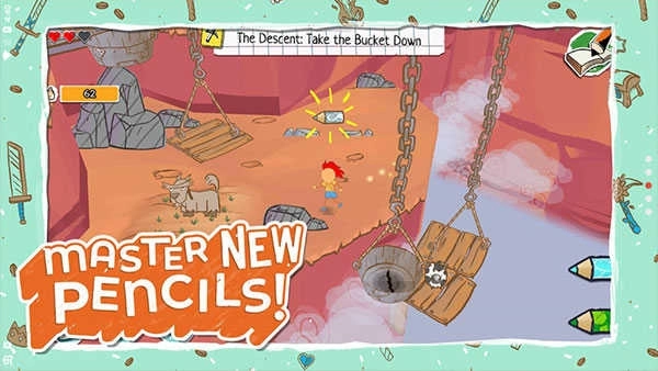 主角没有固定形象。你画的每一道线条都在重塑他——潦草的三角形脑袋会让他说话带回声,加粗的四肢线条赋予额外弹跳力,甚至给眼睛多画一撇高光,就能解锁夜视模式。那支魔法铅笔从不主动施法,只忠实地执行你笔尖传达的物理逻辑。