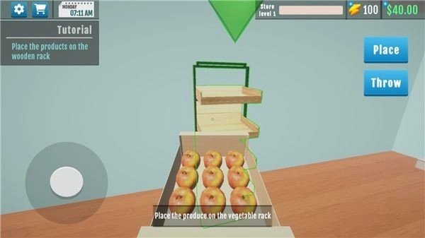 2、进入商店,然后走到货架,点击货架将苹果放上去;