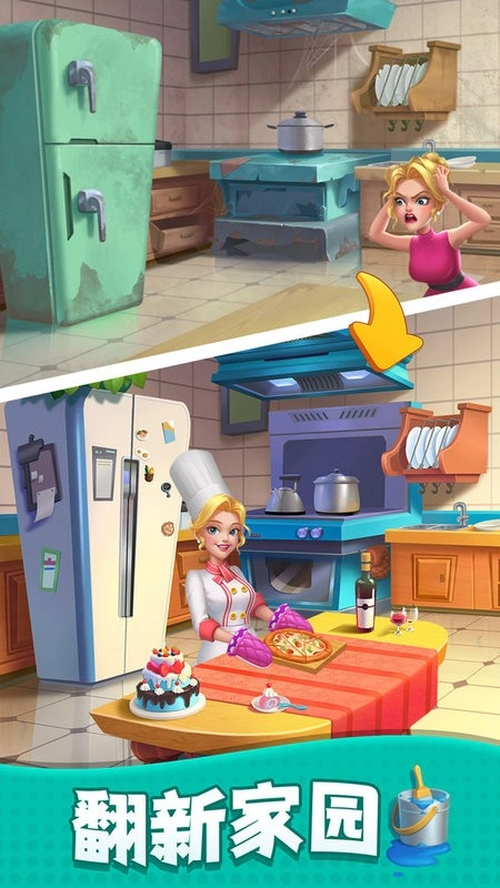 改装大作战是一款充满趣味的休闲装修合成游戏,卡通风格的画面设计精致细腻,多种房间场景等你来探索。通过合成升级家具装饰,让破旧的房间焕发全新面貌,还能解锁丰富剧情故事。游戏中你可以体验不同角色的人生,落魄千金逆袭、新手奶爸带娃、农场经营挑战等玩法应有尽动。简单易上手的操作方式适合各个年龄段的玩家,轻松拖动物品就能完成合成,装修成果即刻呈现。喜欢装修设计和剧情体验的朋友快来试试吧!