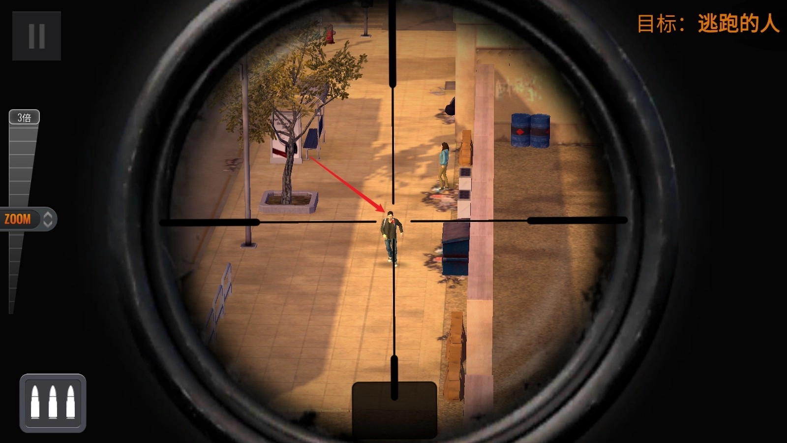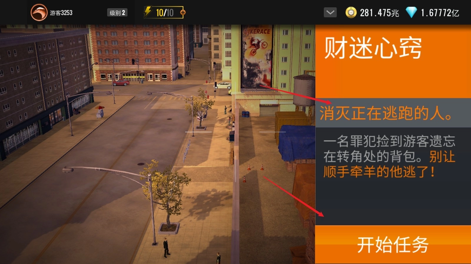 2、比如这一关的目标是一个逃跑的小偷,我们很快就能锁定目标了。