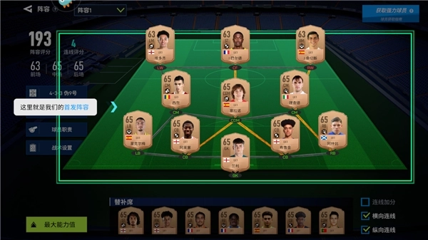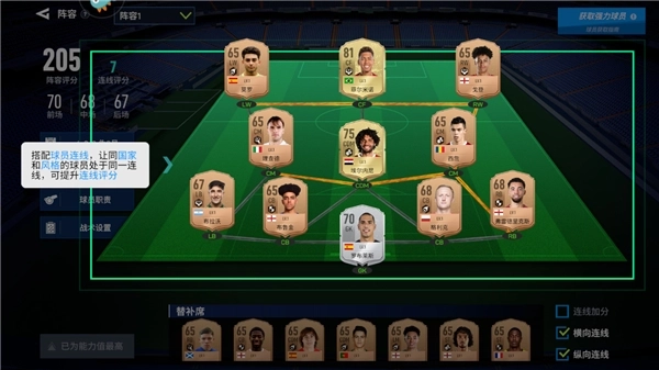 5、搭配球员连线,让同国家和风格的球员处于一连线,这样可以提升连线评分;