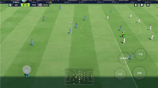 12、左侧负责操控角色的移动方向,右侧则可触发铲断、切换球员、冲刺、加速施压等各类技能,即刻开启专属于你的比赛征程。