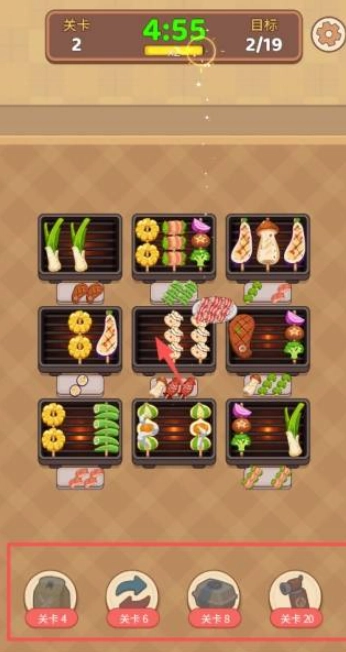 串烧连连分是一款有趣的休闲益智类游戏,你将操控一只卡皮巴拉经营一家烧烤店,通过合理规划,安排好每一个烤串的位置和制作时间,提高出餐效率。游戏以闯关的方式进行,它了丰富的关卡,与此同时,随着关卡的推进,游戏难度也会上升,非常有挑战性。