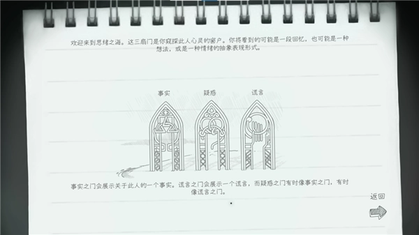 心灵冲浪成功后会出现三扇门,进入其中便能探索该人物的内心世界——这正是本作最核心且最独特的设定。