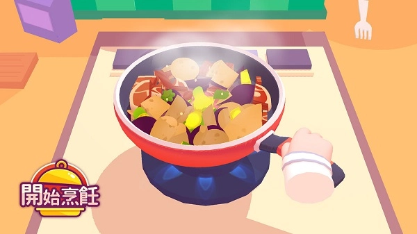 画面不追求写实建模,却用细腻光影勾勒出食物本真质感:煎蛋边缘微微蜷曲的焦边、炖牛肉汤面浮起的琥珀色油花、青椒丝在热锅里弹跳的鲜活弧度。餐具与厨具也非摆设,每把刀有不同手感,每口锅导热速度各异,连砧板上的刀痕深浅都会影响切菜节奏。