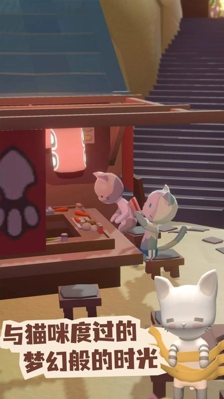 零压力的放置体验:离线时猫咪会自动收集小鱼干,回来就能升级猫屋或购买新服饰;没有强制任务,你可以完全按照自己的节奏玩耍。