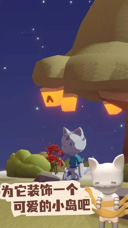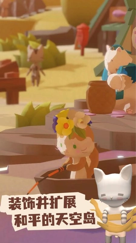 装饰并扩展和平的天空岛:扩展岛屿会开启鲸鱼湾、樱花林等新区域,每个场景都有独特主题与背景音乐;遇到的不只是猫咪,还有会送礼物的小狗和淘气狸猫。
