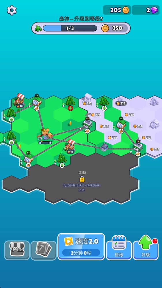 2、当一个区域的全部土地全部开发后,我们将会解锁全新区域,将会发现怎样的全新资源呢?
