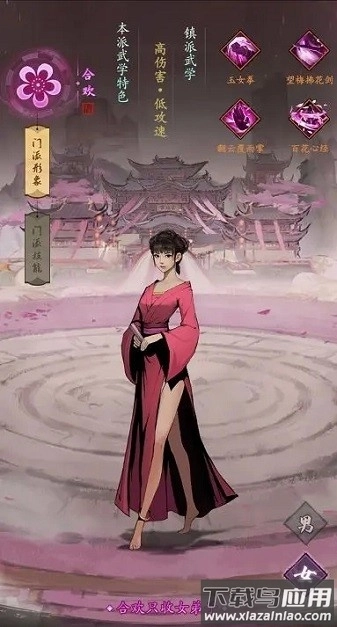 合欢的武学以高伤害、低攻速为显著特色;尽管修习此功法的多为女子,但其招式凌厉刚猛,追求一击制敌,绝不留情。