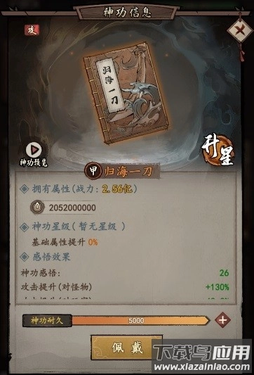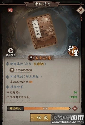 发动时似有似无,细密如漫天云霞;待劲力积蓄到极致,便如排山倒海般铺天盖地,势不可当;攻击速度为1.00(即每秒造成1次伤害),每次攻击可造成相当于自身攻击力3100%的伤害(对玩家角色的伤害效果将缩减至三分之一),该效果持续时长为24秒。
