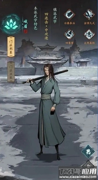 峨眉武学刚柔并济,剑招势若雷霆,拳法形似白猿;整体上同样注重平衡,其攻击特性与武当颇有相似之处。